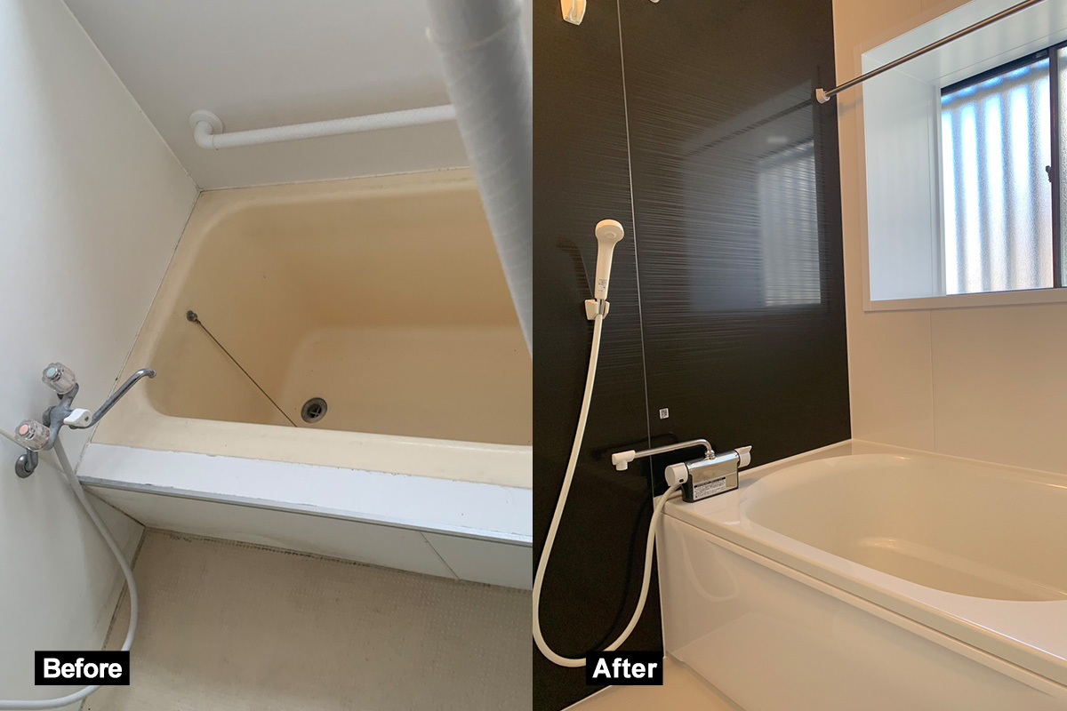 冷たい感じの浴室から温かみのある、使い勝手が良い浴室へ。