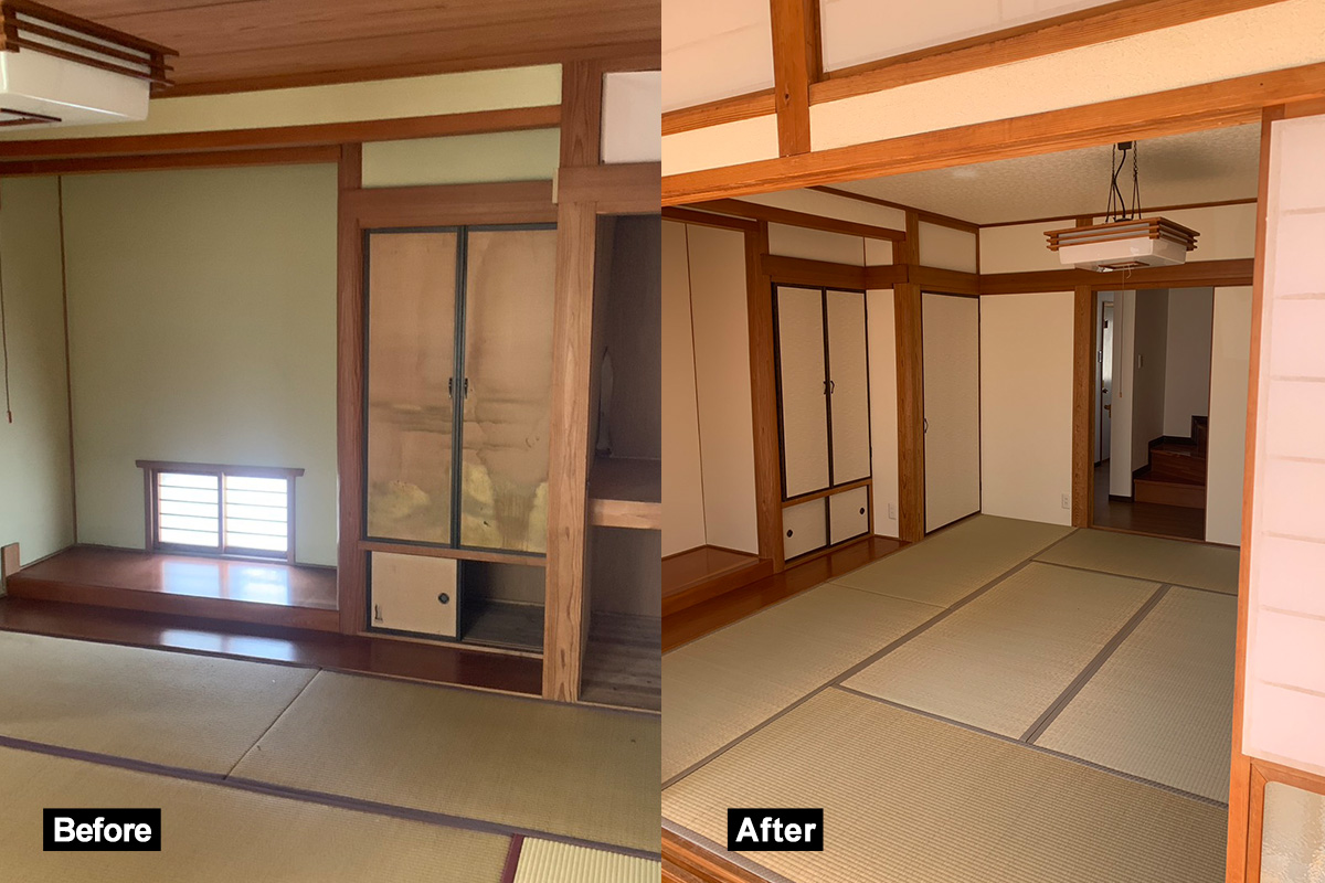和室は天井・クロス・畳を張り替えることで、家族みんなでくつろげる明るい和室へ。