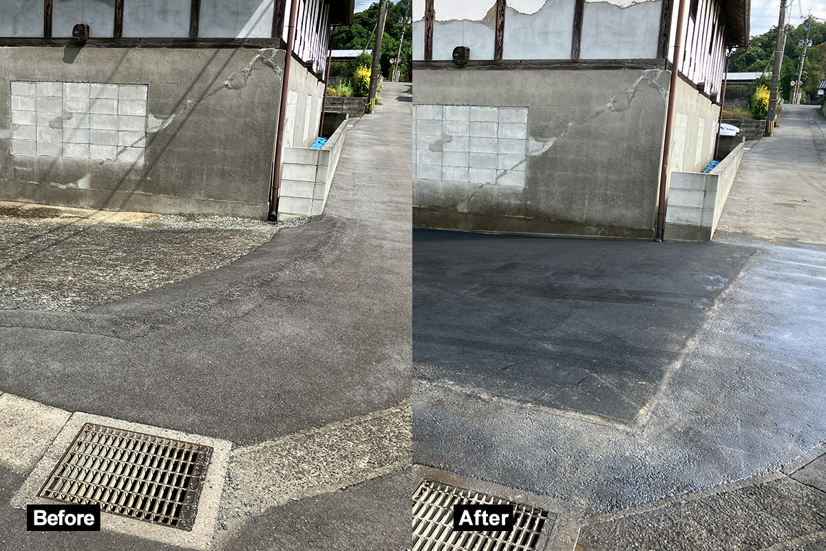 敷地の入り口はアスファルトが盛り上がっており、車が通る時に車体の底を削っていたそうなので、一度剥いで新たにアスファルトを打ち直しております!
