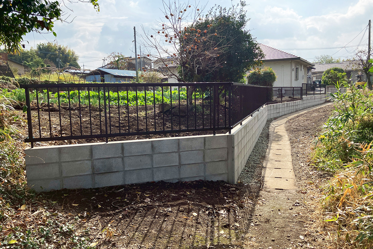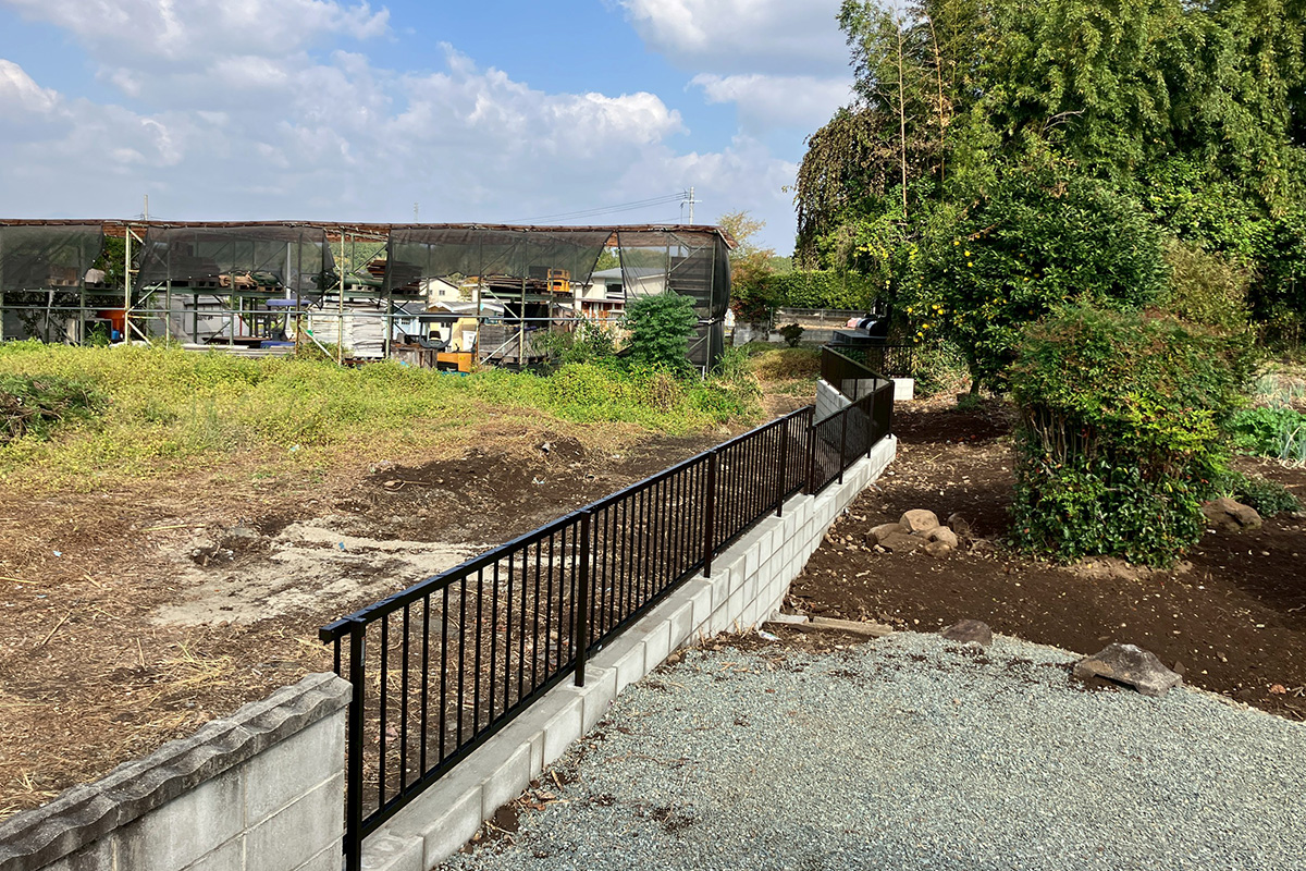 施工前の畑の奥の方には、フェンス等が何もなかったので動物や人が簡単に侵入できましたが、ブロックとフェンスで仕切る事でセキュリティ面でも安心できるようになっております!