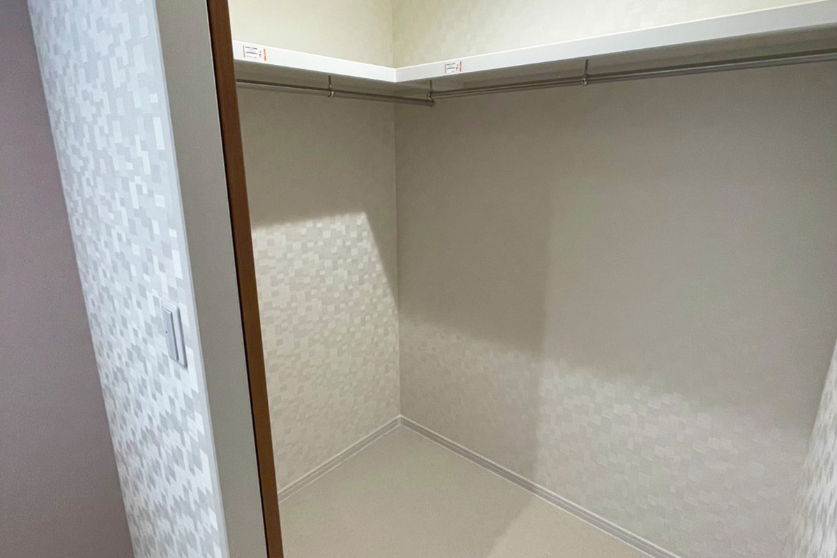 クローゼットも同じ壁紙にすることで、統一感がでます。