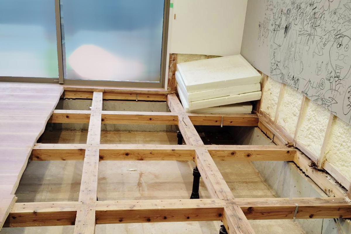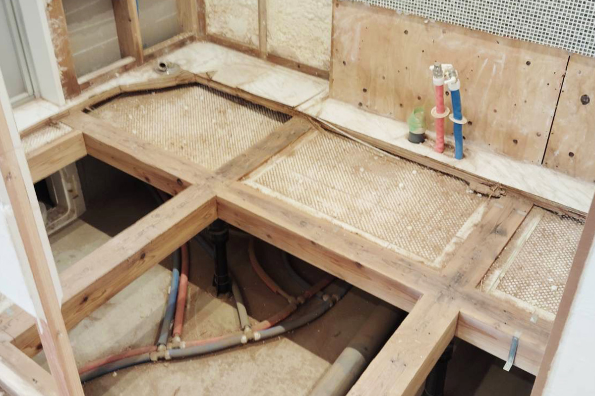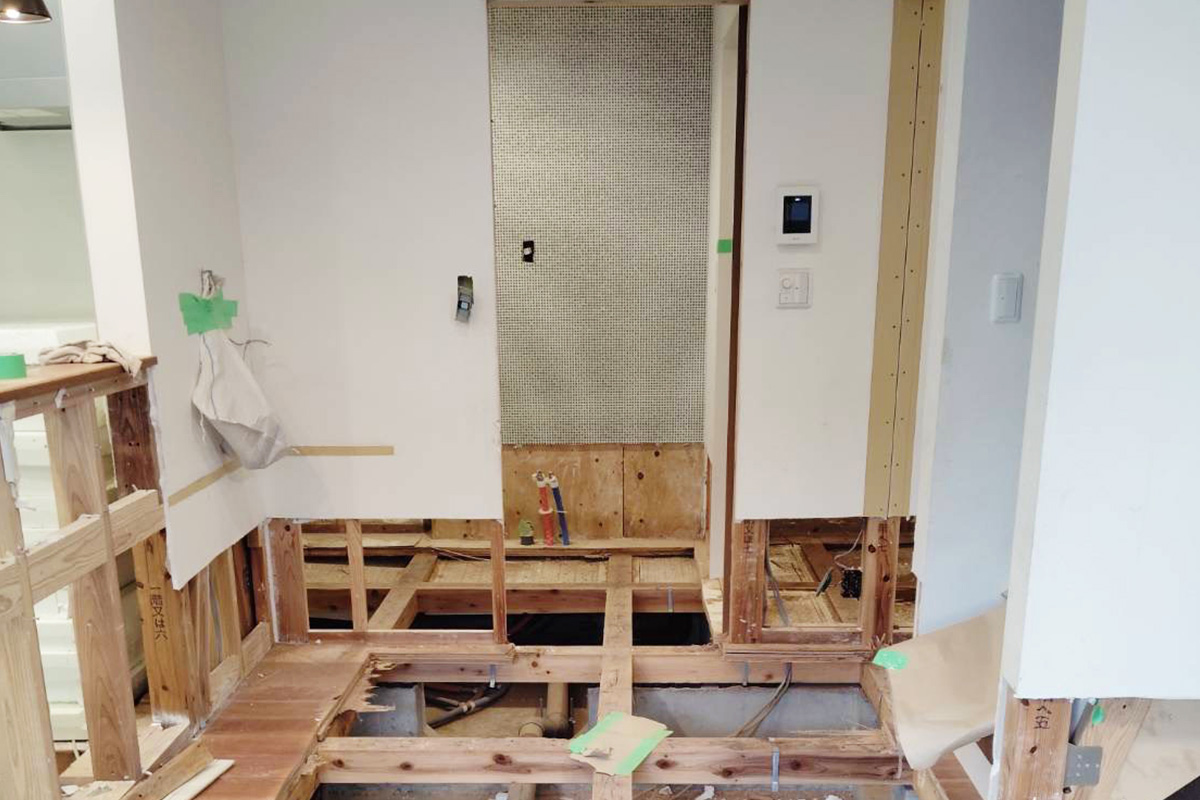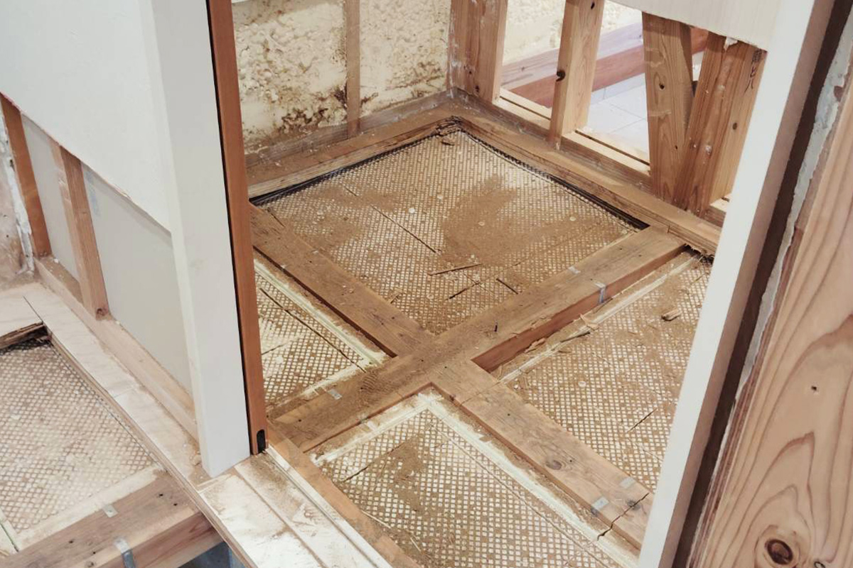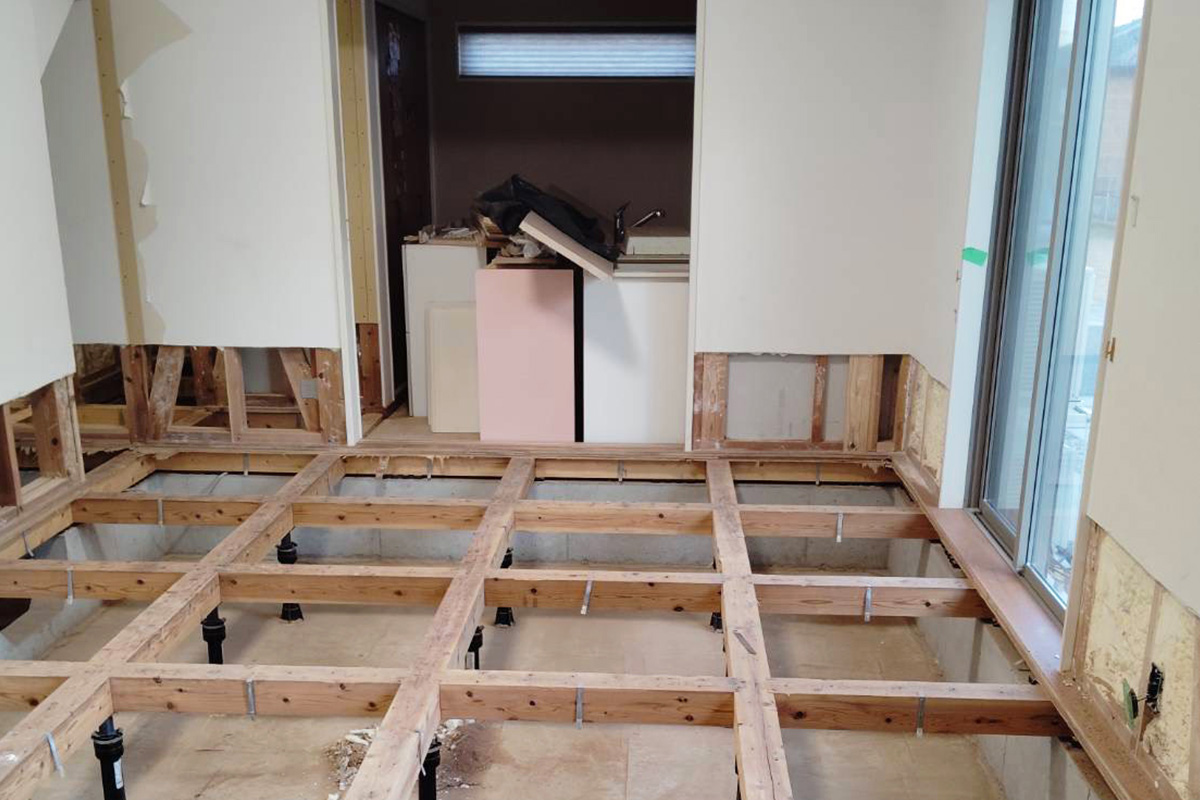 床下や壁の一部にも被害があり、床を剥ぎ張り替えております。